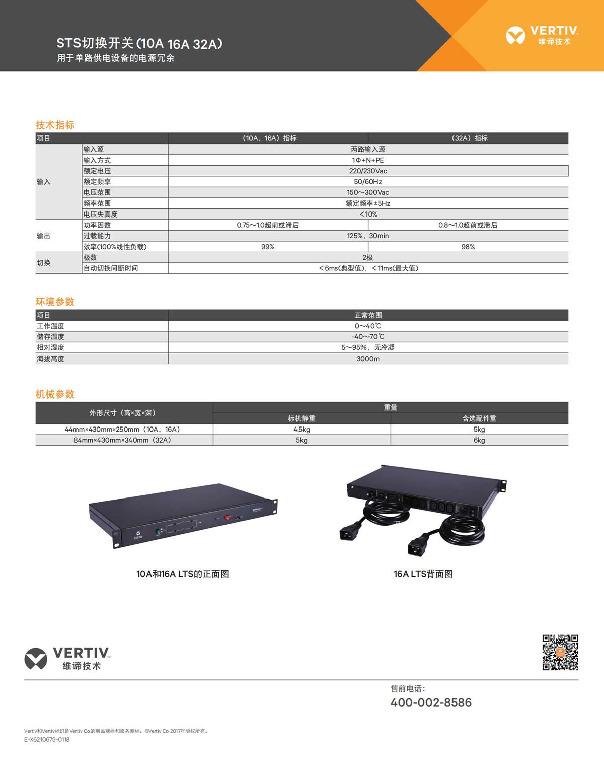 维谛(Vertiv)UF-LTS10-1P10A单相自