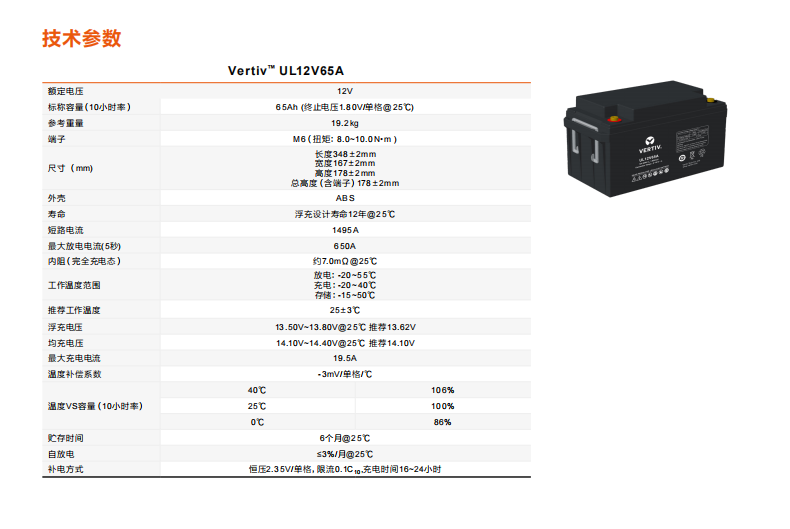 维谛蓄电池UL12V65A 12V65AH