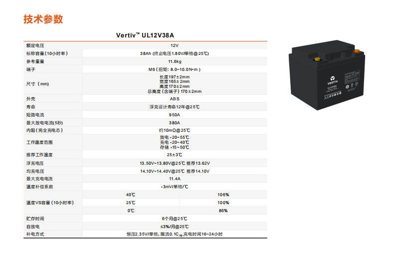 维谛蓄电池UL12V38A 12V38AH
